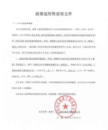 合同包1(新興縣稔村鎮高村、岑村、壩塘村土地開發補充耕地項目[2009]4號(整改)項目):